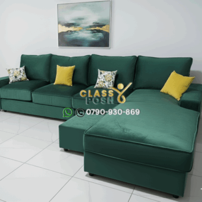 Midnight green L-seat sofa 6 seater
